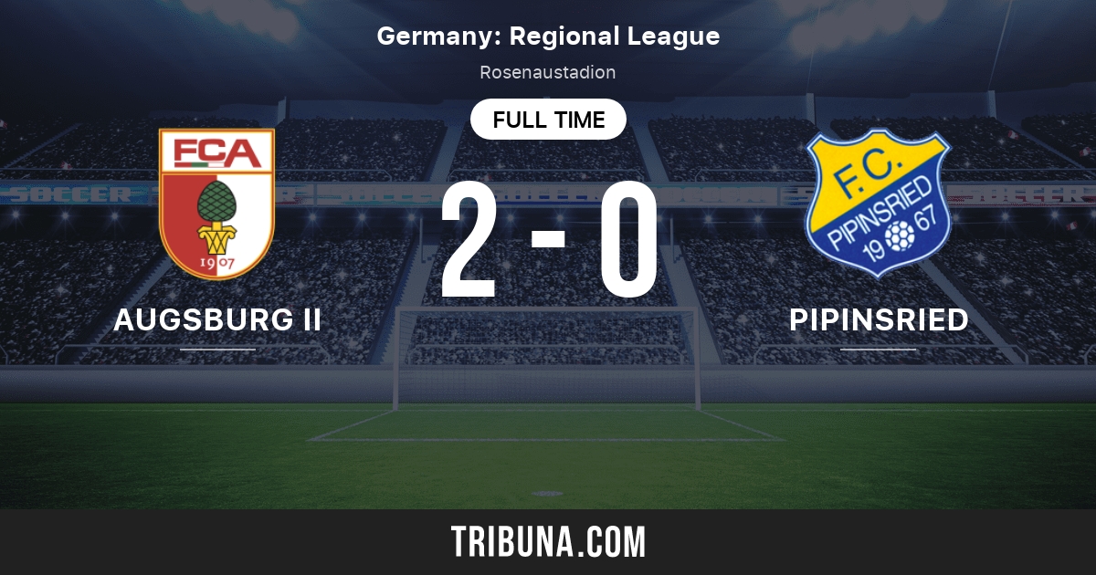 The match of FC Pipinsried vs Augsburg II in Germany Regionalliga Bayern is started at 2021-7-24 2304. Regionalliga Bayern on livescorebz. Free football tips for today 100 percent sure wins for Eltersdorf vs FC Augsburg II competition.