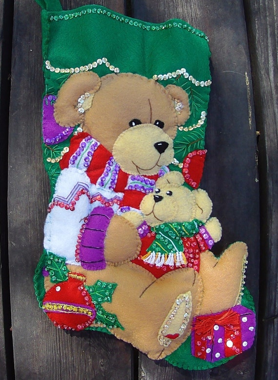 Finished Christmas Stocking Teddy Bear Dimensions Feltworks Etsy Ireland