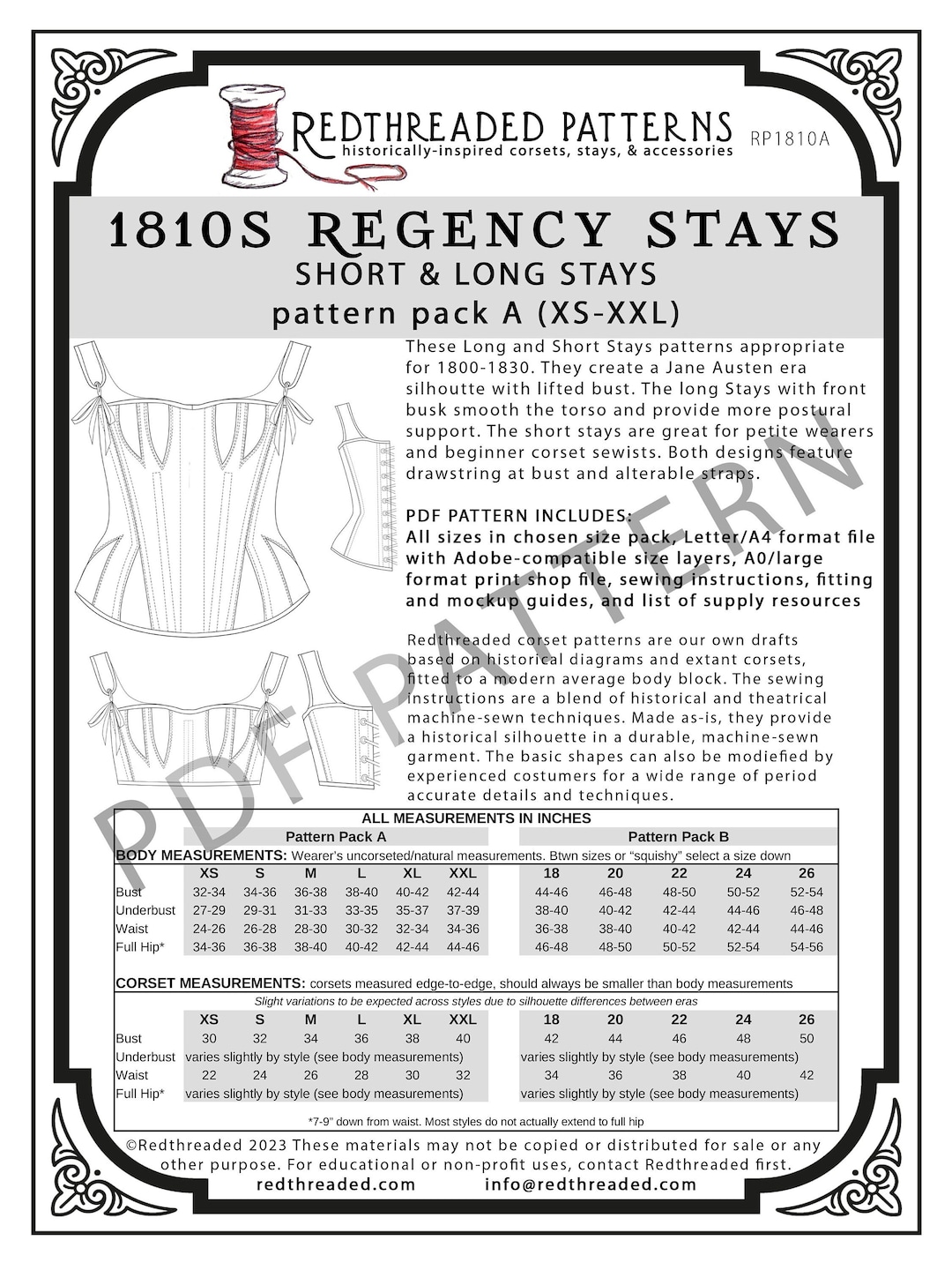 1810s Regency Stays Pdf Pattern Pack A Sizes Xsxxl Etsy De